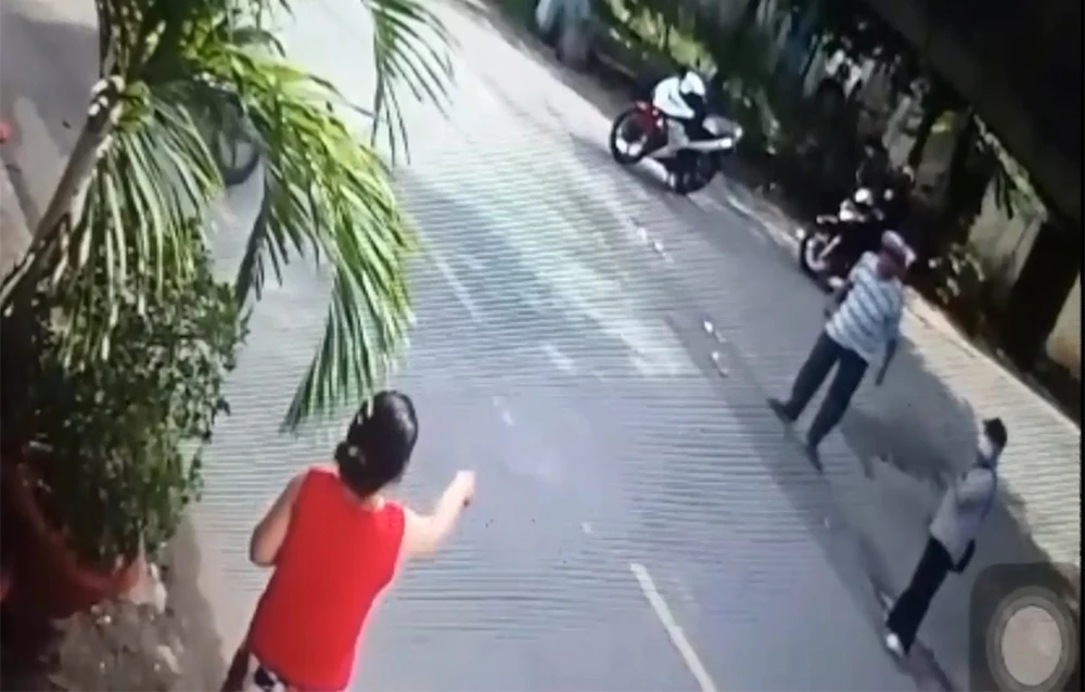 Kế, ông Th. đi tiếp được vài chục mét thì người đàn ông đi xe máy tới dùng tay đấm vào ngực như đoạn camera an ninh đã ghi lại. Lúc này, có một người dân thấy chuyện bất bình nên lớn tiếng can ngăn rằng “đừng đánh nữa, ông ấy bị bệnh đó” thì người đàn ông mới lên xe chạy đi.