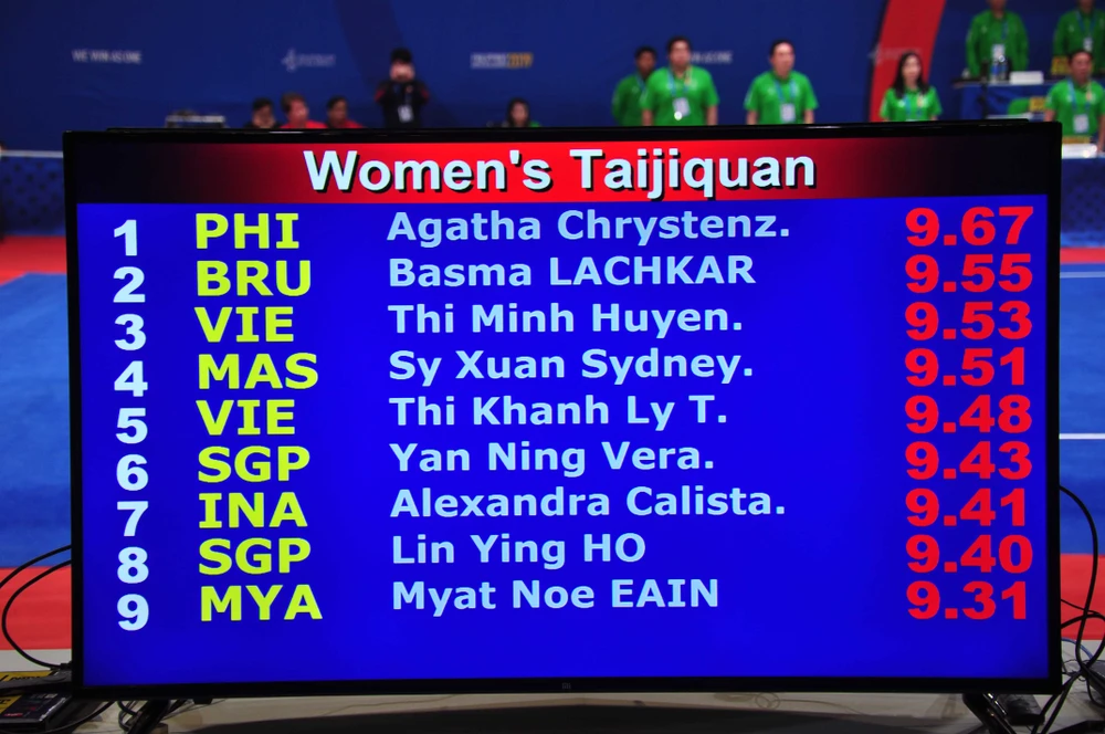 Bảng điểm nội dung thi thái cực quyền nữ. Ảnh: MQ