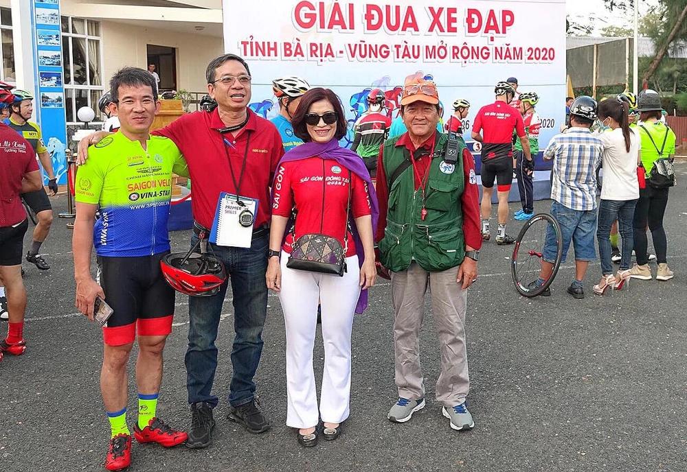 Tay đua Thanh Chí (trái) chụp ảnh lưu niệm trước khi cuộc đua xuất phát. ẢNH: ANH QUÂN