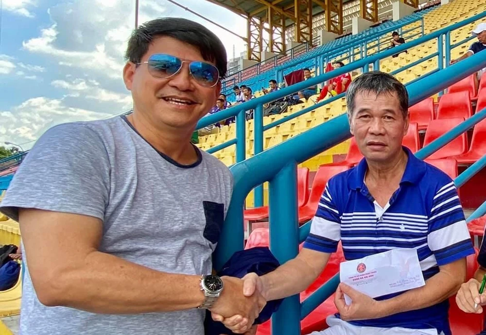 HLV Đạt Hùng (phải) từng dẫn dắt đội Công an TP.HCM đến sân chia sẻ với đồng nghiệp một thời Phan Trung Việt...