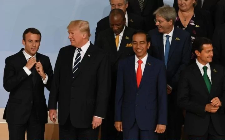 Trong không khí rộn ràng có chút phần hỗn loạn của buổi chụp hình kỷ niệm của nhóm G20, Tổng thống Pháp Emmanuel Macron đã rời bỏ vị trí được sắp xếp sẵn của mình để tiến về phía bìa phải, nơi có Tổng thống Mỹ Donald Trump đang đứng, bỏ lơ sự hướng dẫn của nhân viên sắp xếp.