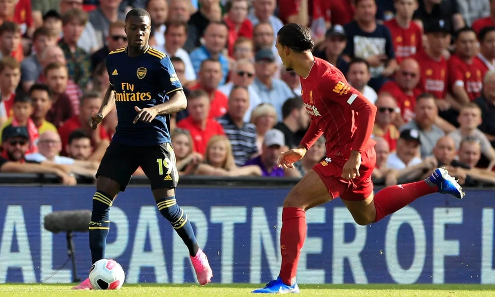 “Bức tường thép” Liverpool bị qua mặt bởi cầu thủ đắt giá nhất lịch sử CLB Arsenal - Nicolas Pepe. Trước Pepe, Mikel Merino (Newcastle) là cầu thủ qua được bóng trước sự vững chãi của Van Dijk.