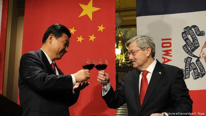 Đại sứ Mỹ Terry Branstad (phải) và Chủ tịch Trung Quốc Tập Cận Bình. Ảnh: DW