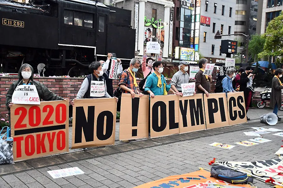 Người dân Nhật Bản phản đối tổ chức Olympic trong khi ban tổ chức thì đang căng mình chống dịch trước giờ khai mạc. Ảnh: GETTY IMAGES