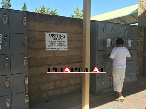 Bên ngoài là các tủ đựng đồ để người tới thăm gửi vật dụng cá nhân. Chỉ được mang theo Driver License, tức bằng lái xe cũng như chứng minh nhân dân.