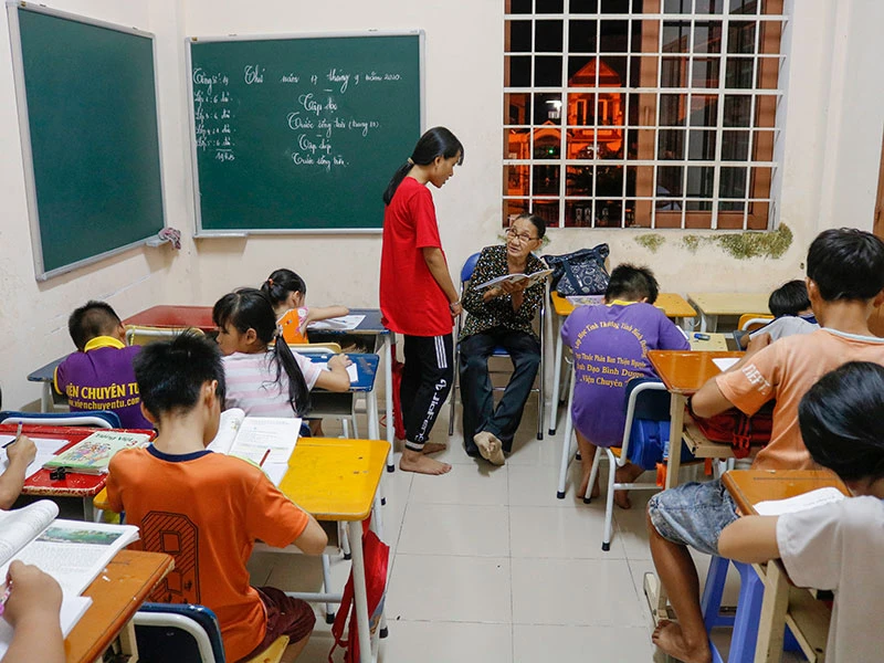 Hiện tại lớp học của cô có 20 em học sinh, theo học môn tiếng Việt với đủ trình độ từ lớp 1 đến lớp 5. Tùy vào từng cấp độ của mỗi em, cô sẽ trực tiếp hướng dẫn riêng từng em trong mỗi buổi học. Cũng như một lớp học bình thường, đầu buổi học cô cũng cho các em điểm danh, ghi sĩ số lớp, sau đó cho các em đọc bài, luyện chính tả và kiểm tra thường xuyên.