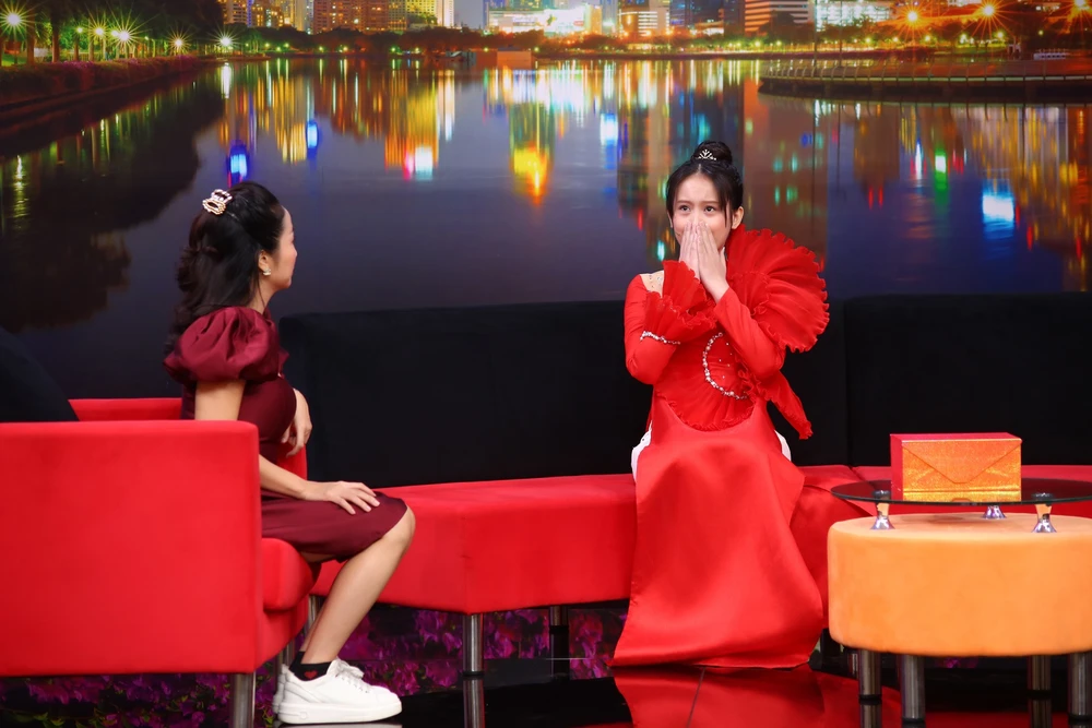 Cô bé bật khóc với MC Ốc Thanh Vân: “Con cảm ơn mẹ đã đồng hành, ủng hộ con suốt thời gian qua. Mẹ đi diễn cùng con từ lúc con học lớp bốn. Mẹ cho con đi học nhiều môn năng khiếu, để con phát triển khả năng. Con yêu mẹ rất nhiều!”.