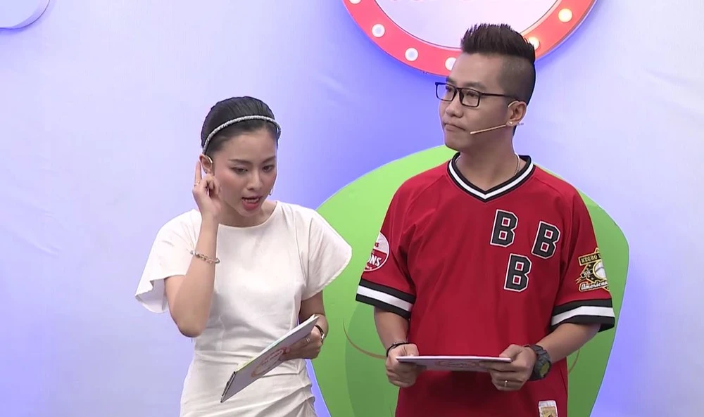 Hoàng Rapper đang nói thì bỗng dung khựng lại, ấp a, ấp úng rồi nhìn liếc qua Tuyền Tăng nói tiếp: “Đáng tiếc là dành cho các gia đình chứ không phải dành cho MC” khiến cô em bật cười ha hả.
