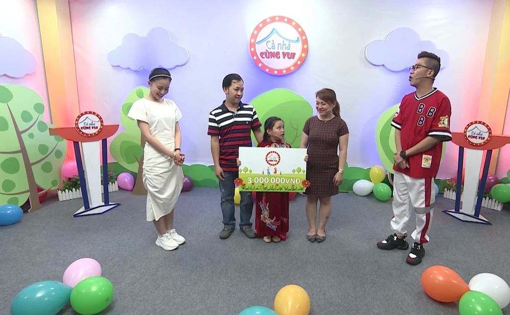 Với 1/5 đáp án trùng khớp, gia đình bé Tuyết Anh mang về giải thưởng ba triệu đồng. Ảnh: BEE