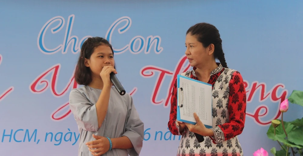 Đó là chia sẻ của bé Trần Ngọc Hồng, hiện sống tại mái ấm chùa Kỳ Quang 2 (quận Gò Vấp) tại lễ tổng kết chương trình “Cho con tình yêu thương” diễn ra sáng 2-6 tại trụ sở báo Phụ Nữ TP.HCM (quận 3).