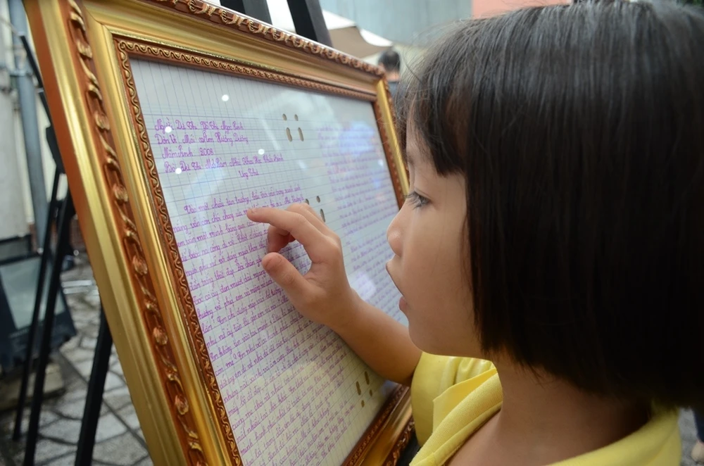 Một bức thư của một bạn nhỏ ở mái ấm được trưng bày tại chương trình. Ảnh: TL