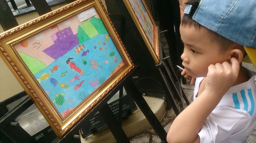 Những bức tranh chuyển tải ước mơ của các em được trưng bày tại chương trình. Ảnh: TL