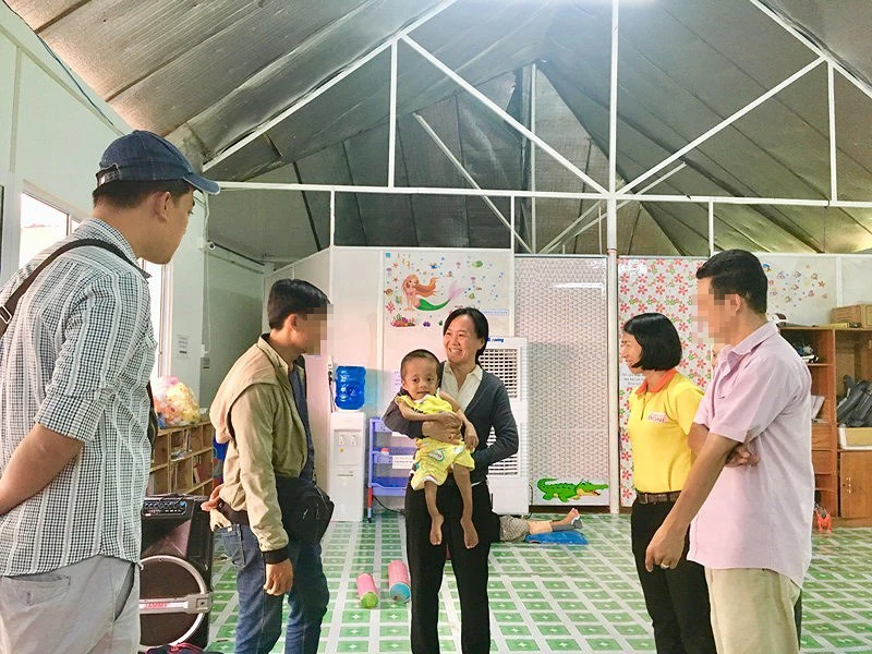 Phát hiện trong góc phòng có bé đang nằm sấp, lại tay với với như muốn lăn tiếp, cô Linh cất tiếng gọi khẽ: “Thương, con chưa ngủ hả?”. Đáp lại, là giọng nói lảnh lót: “Con chưa ngủ, cô cho con chơi với!”. Cô Linh nhẹ nhàng bế bé ra ngoài.