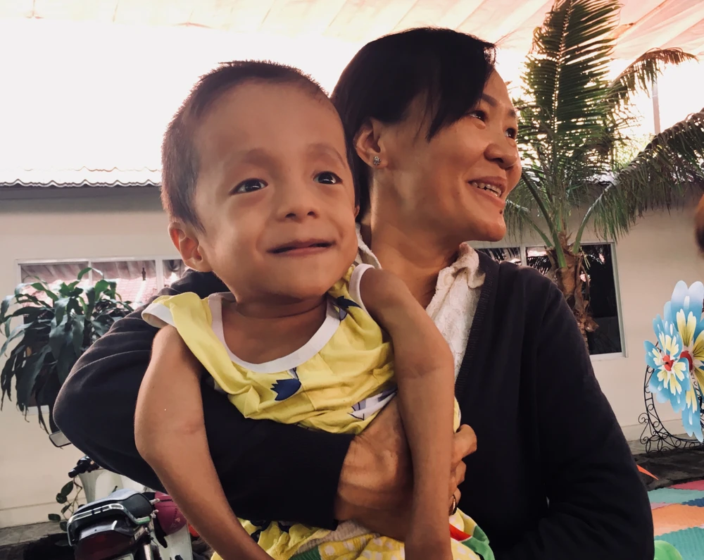 “Có lần bé bị gãy chân, nằm chơi tay xoay xoay khối rubik. Lát tôi quay lại, thấy bé xếp được mới ngỡ ngàng hỏi: Thương con làm đó hả? Bé cười lí lắc: con làm đó cô. Không phải giờ nghỉ ngơi, để bé hát Happy birthday cho các cô chú nghe! Bé thông minh với hát vui lắm. Hồi trước khi mới vào, xương bé rất dễ gãy, giờ uống thuốc tập luyện bé đã đỡ hơn, bé còn có thể lăn, trườn rồi đấy” - cô Linh cười dịu dàng, nắm chặt bàn tay gầy gò mềm oặt của cậu học trò nhỏ.