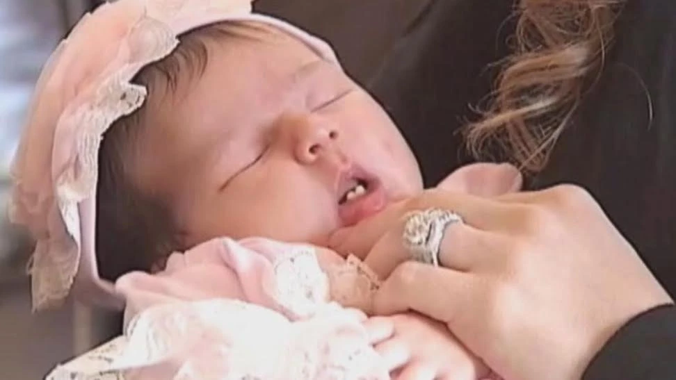 Các bác sĩ và y tá bệnh viện ở Branson, Missouri (Mỹ) rất ngạc nhiên khi cô bé Alyssa mới chào đời đã có hai răng cửa phía dưới.