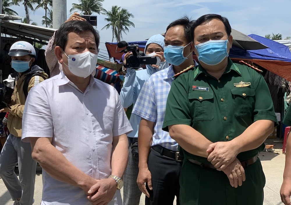 Chủ tịch UBND tỉnh Quảng Ngãi Đặng Văn Minh (trái) kiểm tra công tác phòng chống COVID-19. Ảnh: TN