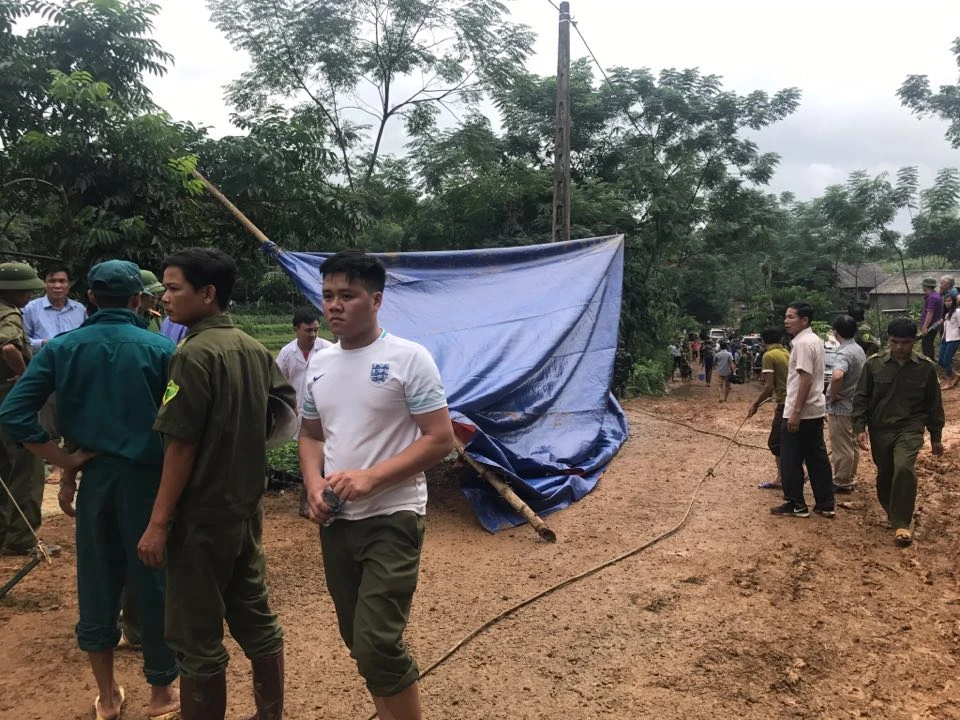 Đến 13 giờ chiều 12-10, vẫn còn 10 người bị vùi lấp trong tổng số 18 người bị vùi lấp của bốn gia gia đình ở xóm Khanh vẫn chưa được tìm thấy.