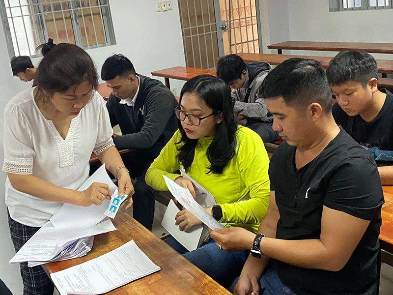 Học viên thi tốt nghiệp lý thuyết lái xe ô tô tại một trung tâm đào tạo lái xe ở TP.HCM. Ảnh: HOÀNG GIANG
