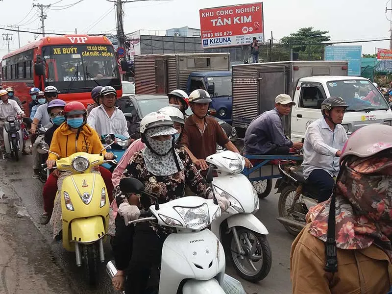 Với mức chi ngân sách như hiện nay, TP bị quá tải và lạc hậu về hạ tầng kỹ thuật và hạ tầng xã hội. Trong ảnh: Ùn tắc giao thông trên đường Nguyễn Văn Linh, huyện Bình Chánh, TP.HCM. Ảnh: HTD