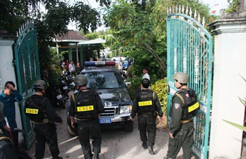 Cả trăm cảnh sát vây bắt thuốc lá lậu tại huyện Củ Chi ngày 3-1-2015. Ảnh: AX