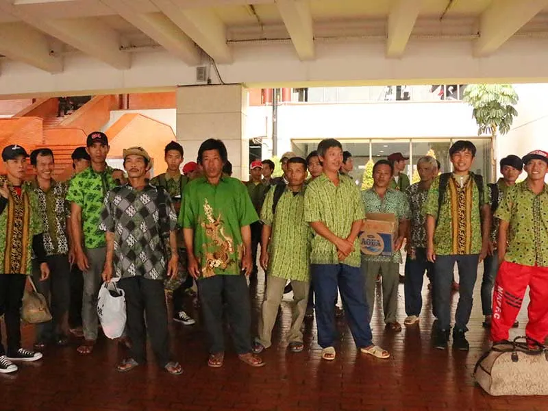 Các ngư dân tại sân bay Soekarno Hatta (Indonesia) chuẩn bị về nước . Ảnh: TTXVN