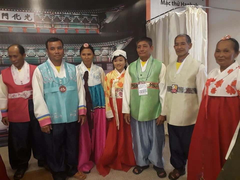 Gia đình cô dâu Việt Nam trải nghiệm văn hóa Hàn Quốc với trang phục truyền thống Hàn Quốc ở TP.HCM.