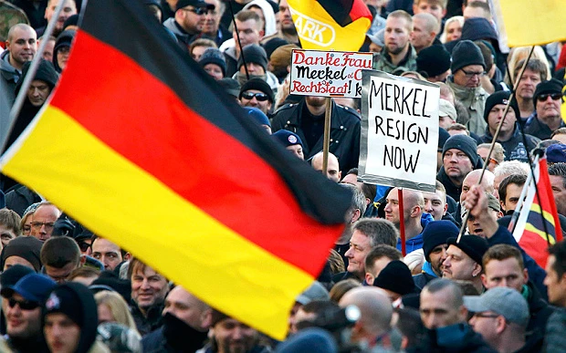 Đám đông của phe cực hữu biểu tình phản đối chính sách nhập cư của Đức. Ảnh: Telegraph