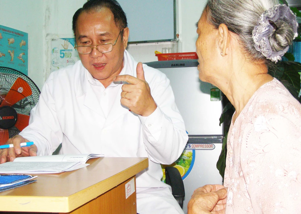 Bác sĩ đang giải thích cặn kẽ tình hình bệnh tật cho một bệnh nhân. Ảnh: TRẦN NGỌC