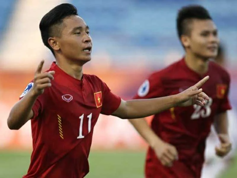 Minh Dĩ ghi bàn mở tỉ số trong trận hòa UAE 1-1. Ảnh: VF
