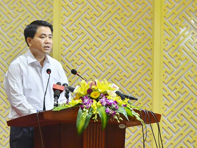 Chủ tịch UBND TP Hà Nội Nguyễn Đức Chung khẳng định đất Đồng Tâm bị thu hồi làm sân bay Miếu Môn chỉ có 64,11 ha chứ không phải là 96 ha hay 106 ha như người dân phản ánh. Ảnh: TRỌNG PHÚ