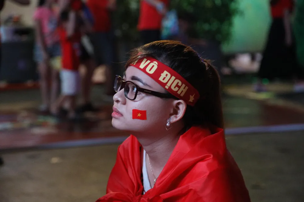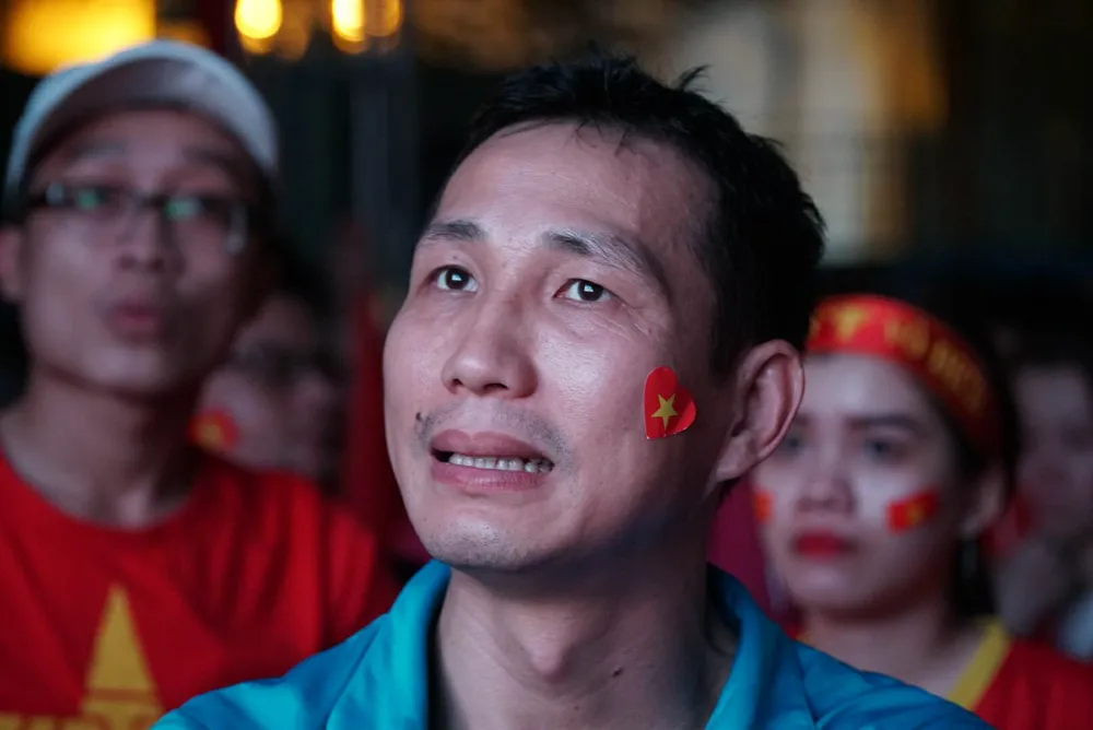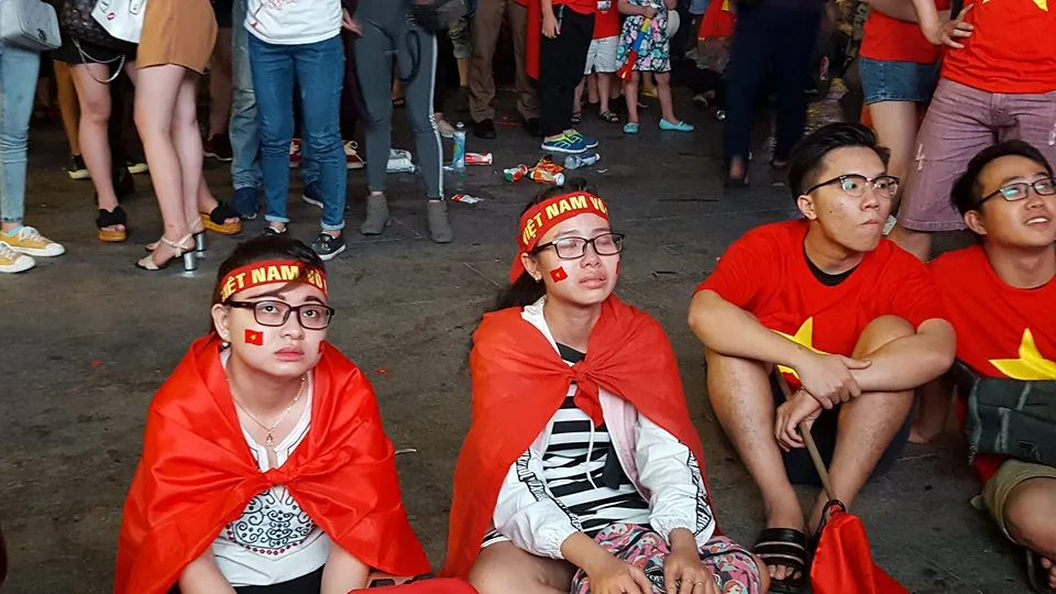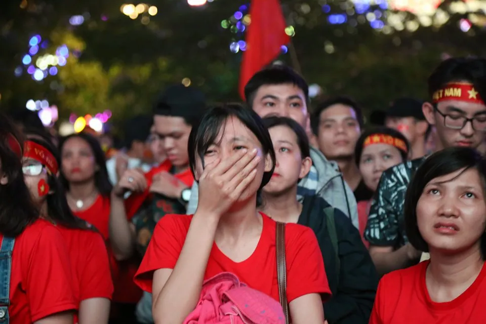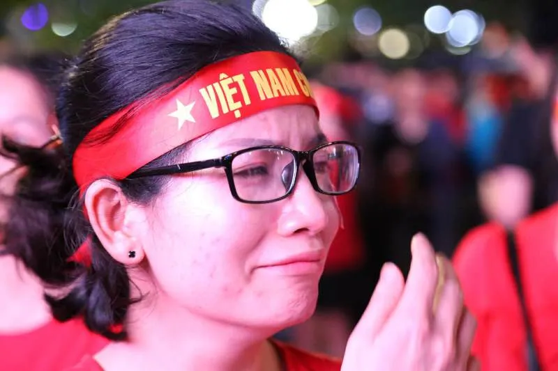 Những giọt nước mắt lăn trên má của cổ động viên Việt Nam. Ảnh: Hoàng Giang
