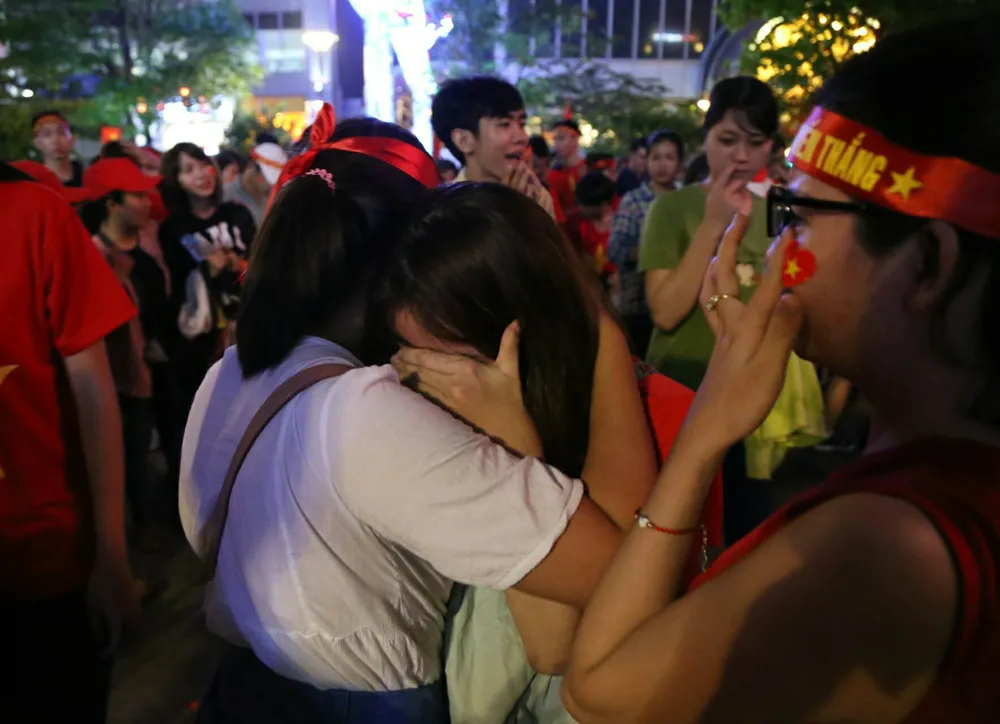 Clip: CĐV bật khóc tại phố đi bộ Nguyễn Huệ. Thực hiện: Đào Trang