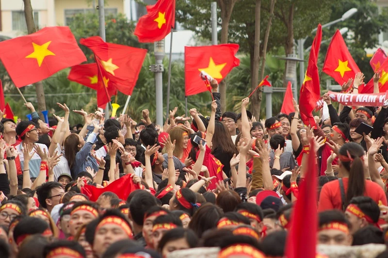 Hàng ngàn người cùng hòa theo những cung bậc cảm xúc trong trận đấu.