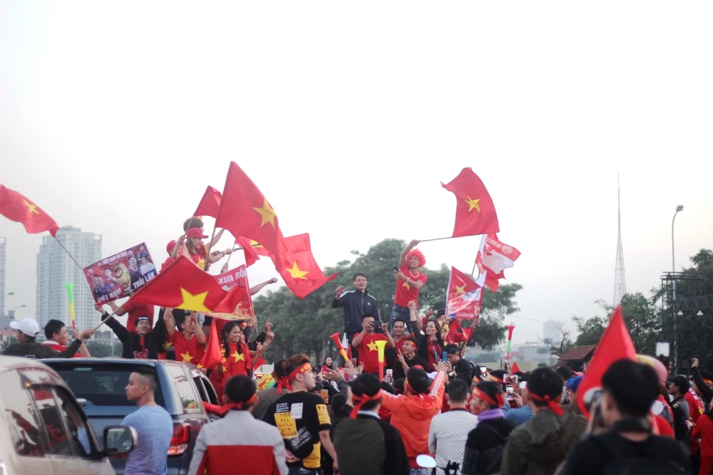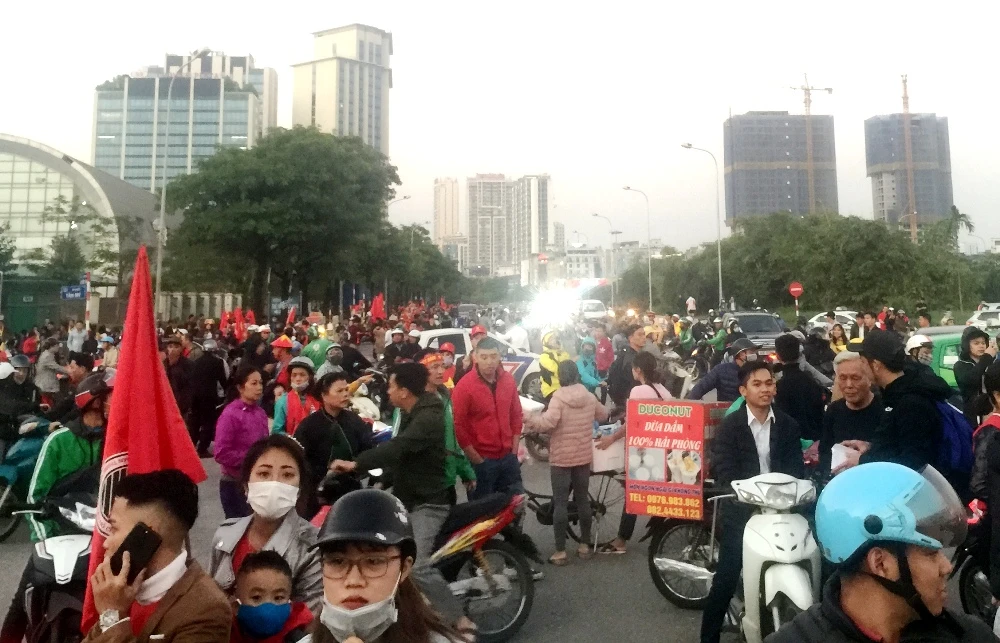 Lúc này, không khí khu vực xung quanh sân vận động Mỹ Đình đã bắt đầu náo nhiệt. Các ngả đường đổ về đây đã bắt đầu rơi vào tình trạng lưu thông chậm chạp, thậm chí tắc nghẽn.