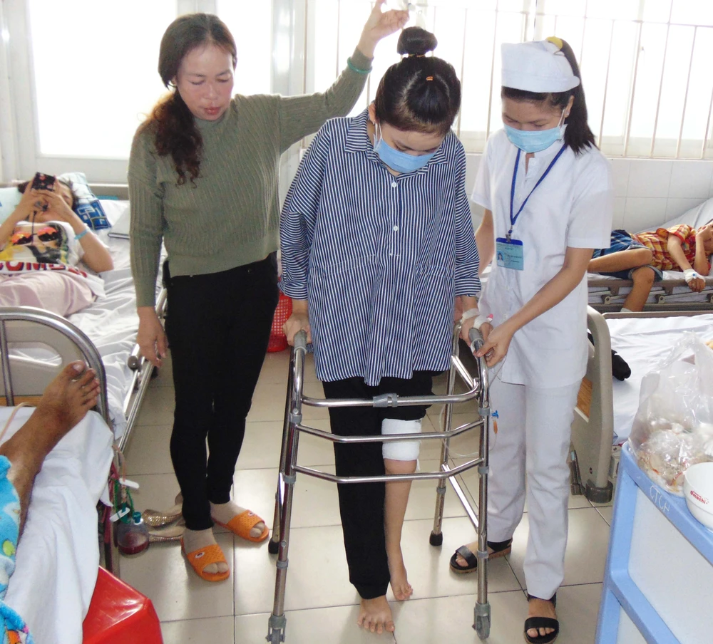 Bà Nguyễn Thúy Hằng, điều dưỡng trưởng khoa Chấn thương Chỉnh hình BV quận Thủ Đức, cho biết do các BS kiểm soát được tình trạng đông máu trước, trong và sau phẫu thuật nên ca mổ duỗi gân chân của Vy đã thành công. “Hiện Vy đang được các BS tiến hành tập vật lý trị liệu để mau chóng phục hồi chức năng sau mổ. Hiện Vy đã tự đi từng bước nhờ sự hỗ trợ của khung sắt. BS điều trị nói chắc chắn một điều với sự nỗ lực tập luyện, Vy sẽ tự đi đứng bình thường trong thời gian không xa” - bà Hằng nói.