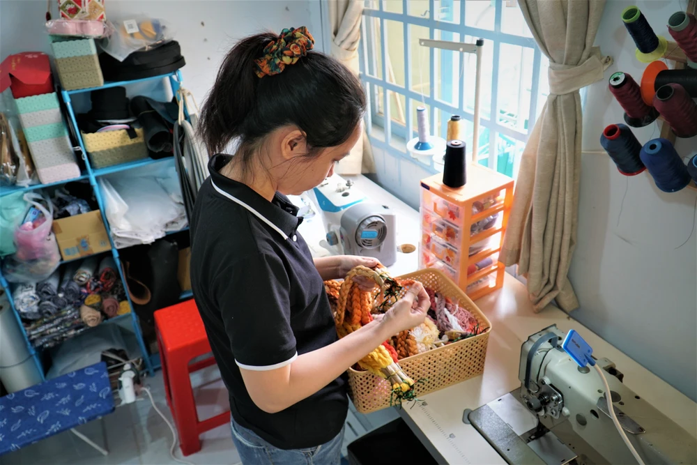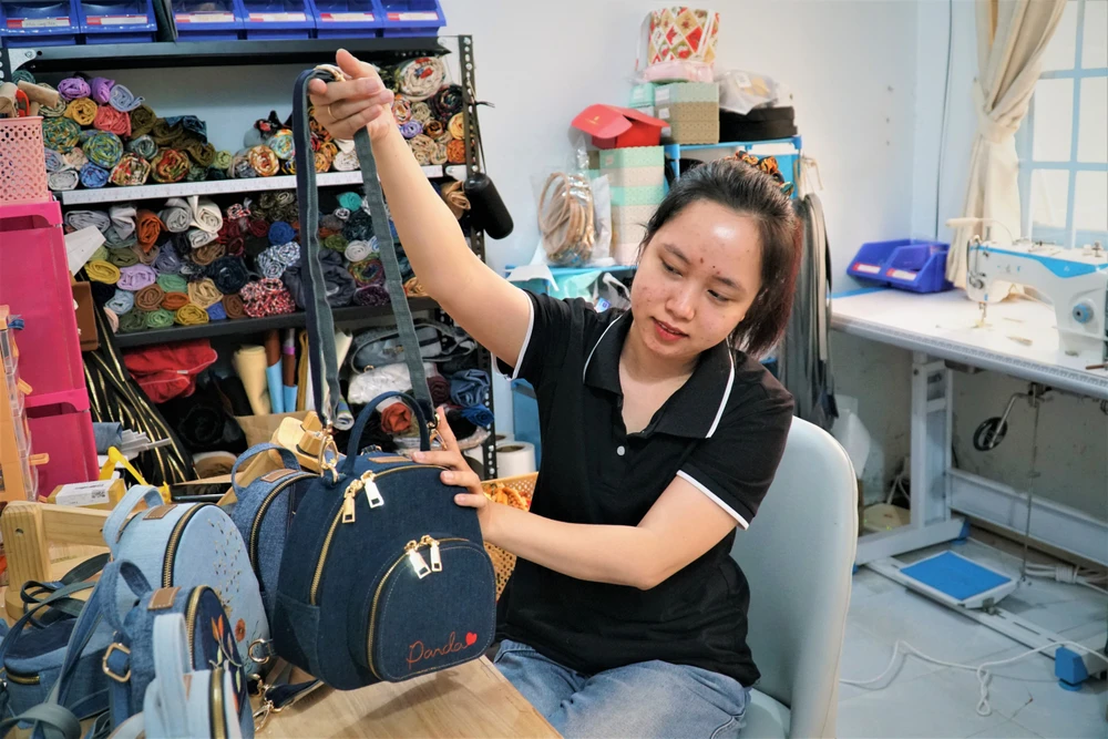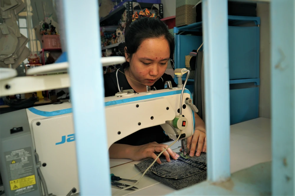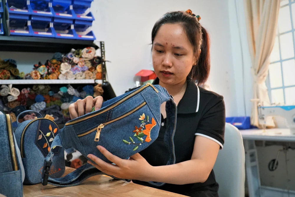 Đam mê với đồ handmade và dành tình yêu đặc biệt với môi trường, cô gái Nguyễn Thị Hồng Thắm (ngụ quận Tân Bình, TP.HCM) luôn ấp ủ mong muốn làm ra những sản phẩm thân thiện với môi trường. Từ sản phẩm đầu tiên là chiếc túi xách nhỏ được may từ chiếc quần jean cũ của ông xã, được mọi người yêu thích và ủng hộ, Thắm dần bén duyên với công việc tái chế đồ jean.