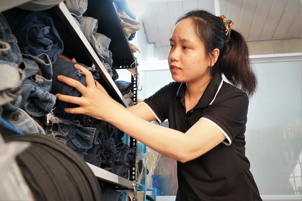 “Khi làm xong chiếc túi đầu tiên mình có chia sẻ lên các hội nhóm và thấy có rất nhiều bạn thích và hỏi xin địa chỉ để gửi cho những đồ jean cũ mà các bạn không dùng, những món này về cơ bản lỗi thời hoặc có những vết bẩn, rách, không sử dụng được nhưng họ cảm thấy vứt đi rất phí nên họ cho mình để tái chế. Mình lấy về giặt giũ và sử dụng lại” - Hồng Thắm chia sẻ.