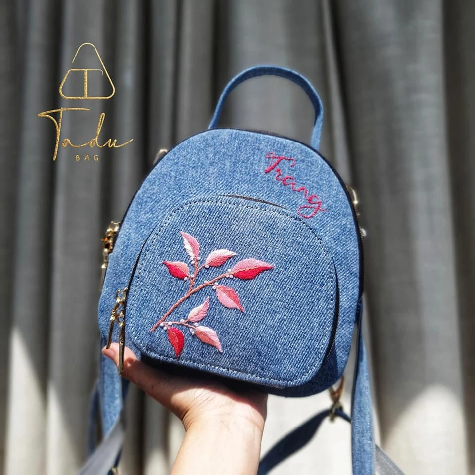 Những chiếc balo bằng vải jean tái chế không đụng hàng.
