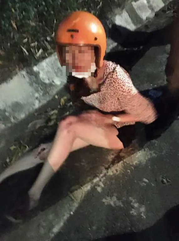 Cô gái bị ngã nhào trên đường, trầy xước khắp người. Ảnh: VĂN HÙNG