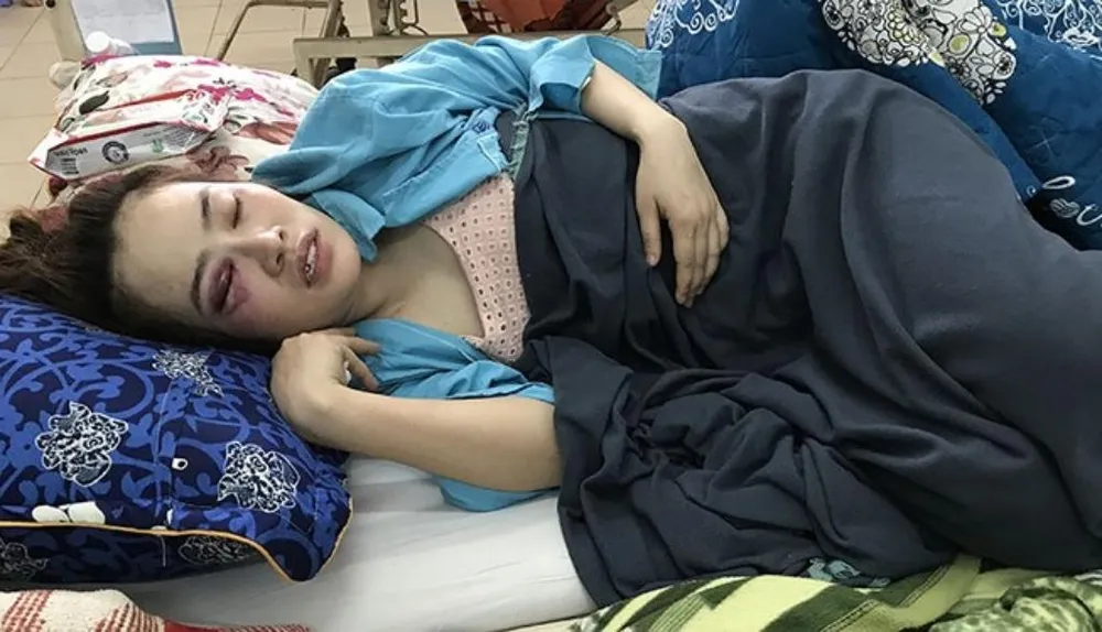 Chị Như bị đánh gãy mấy cái răng và thâm tím mặt mày. Ảnh: HH