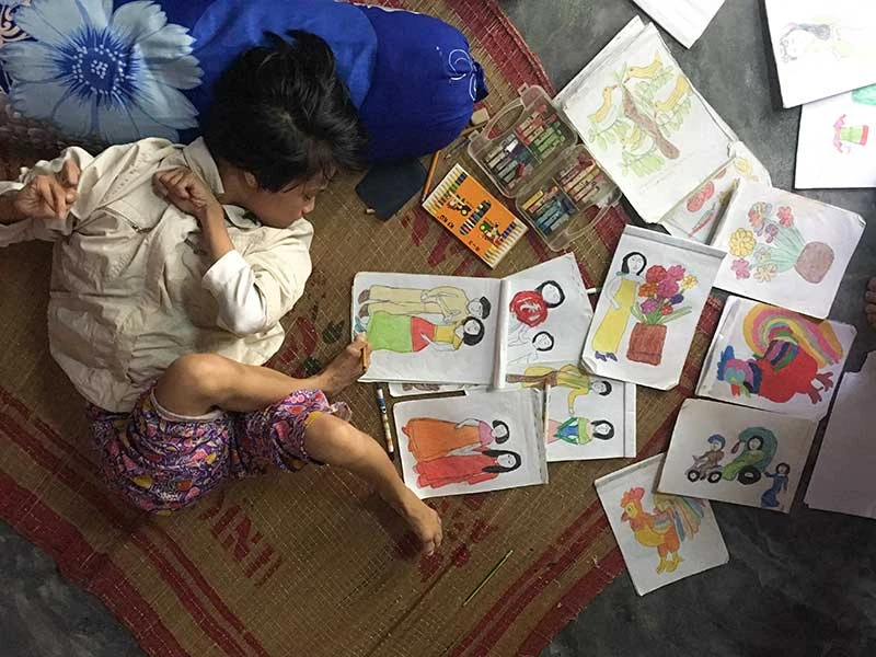 Lật những tập tranh do chính con gái vẽ, bao ký ức năm tháng như ùa về với người phụ nữ tần tảo. Bà Liên nói: “Mỗi khi cho Thảnh ngủ xong, buồn buồn tôi lại lật những bức tranh nó vẽ ra coi. Nhìn những bức tranh, tôi không cầm được nước mắt. Mình sinh Thảnh ra chịu thiệt thòi so với mọi người rồi, giờ muốn bù đắp cho nó nhưng vì nghèo khổ nên chẳng biết làm sao”.