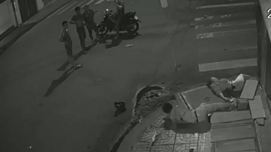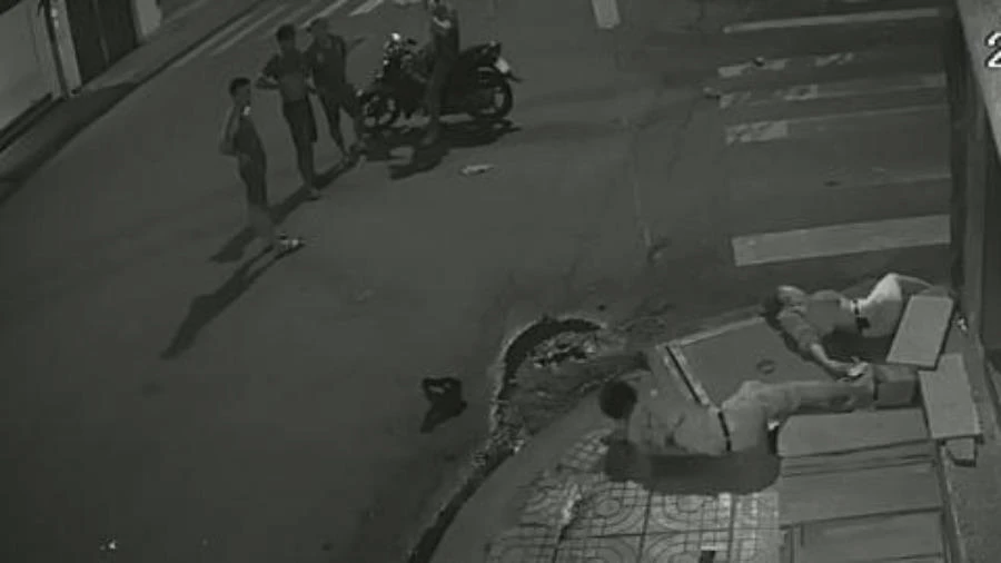 Nhiều người đi đường chỉ đứng nhìn hai nạn nhân nằm trên vỉa hè ở quận Tân Phú.