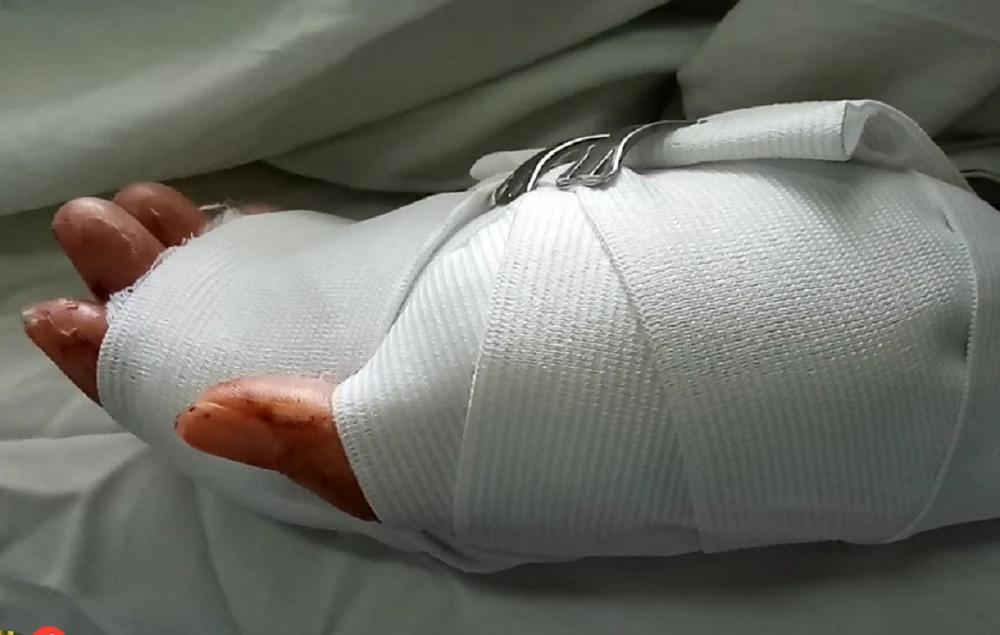 Bàn tay cô gái bị chém gần đứt lìa - Ảnh: H.H