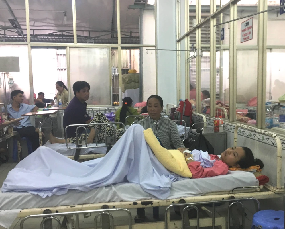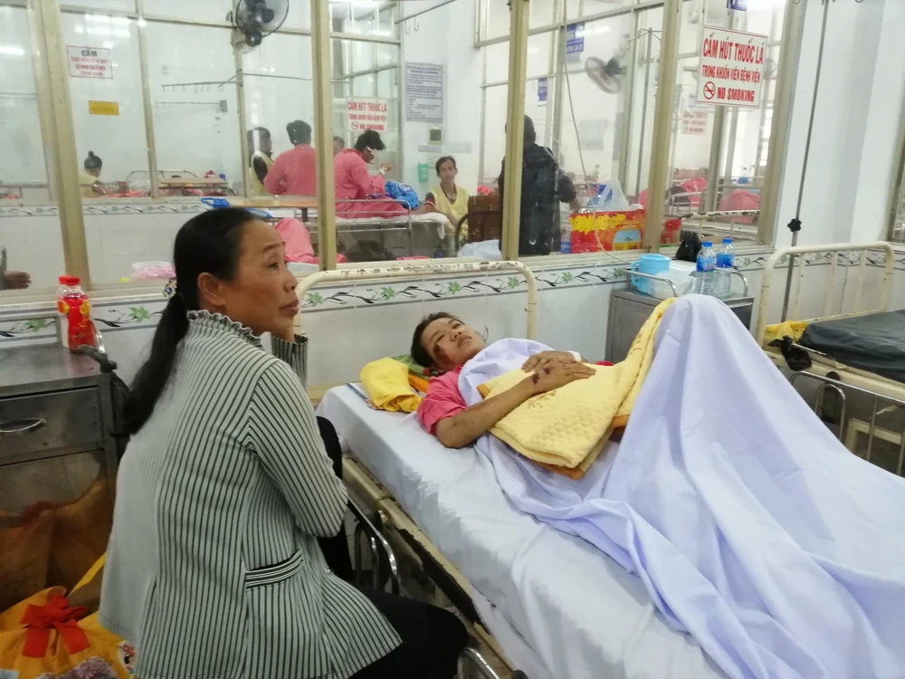 Nhìn con gái Hà Mỹ Xuân (sinh năm 1996, ngụ Đồng Tháp) bị xây xát khắp mặt và tay chân, bà Trần Thị Hường, mẹ bệnh nhân lại rơm rớm nước mắt.