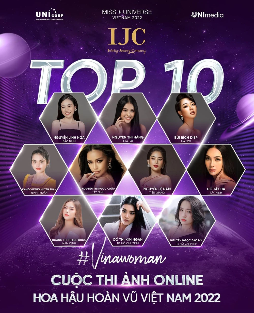 Danh sách top 10 cuộc thi ảnh Hoa hậu hoàn vũ Việt Nam 2022. Ảnh: HHHV VN