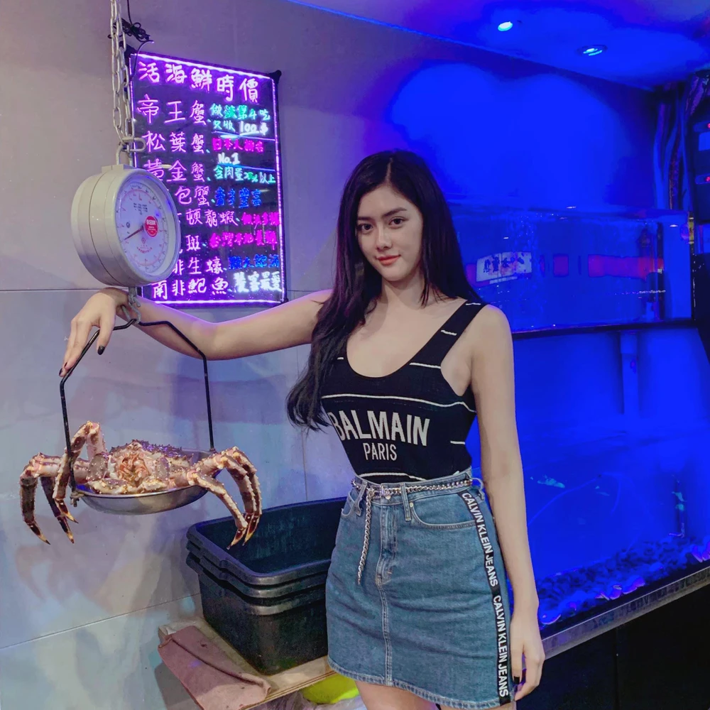 Đi chợ đêm Tây Môn Đinh, người đẹp 9x vẫn thu hút sự chú ý với trang phục áo ba lỗ, chân váy jean. Bộ đồ này còn được ưu ái cho những địa điểm du lịch đòi hỏi sự di chuyển nhiều.