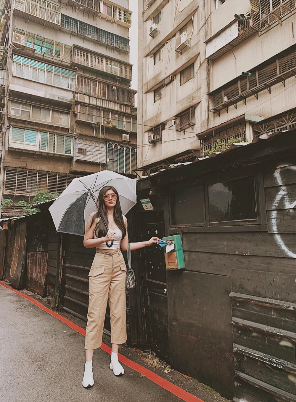Học Huỳnh Tiên cách mix đồ tự tin xuống phố Đài Loan mặc trời mưa bão.
