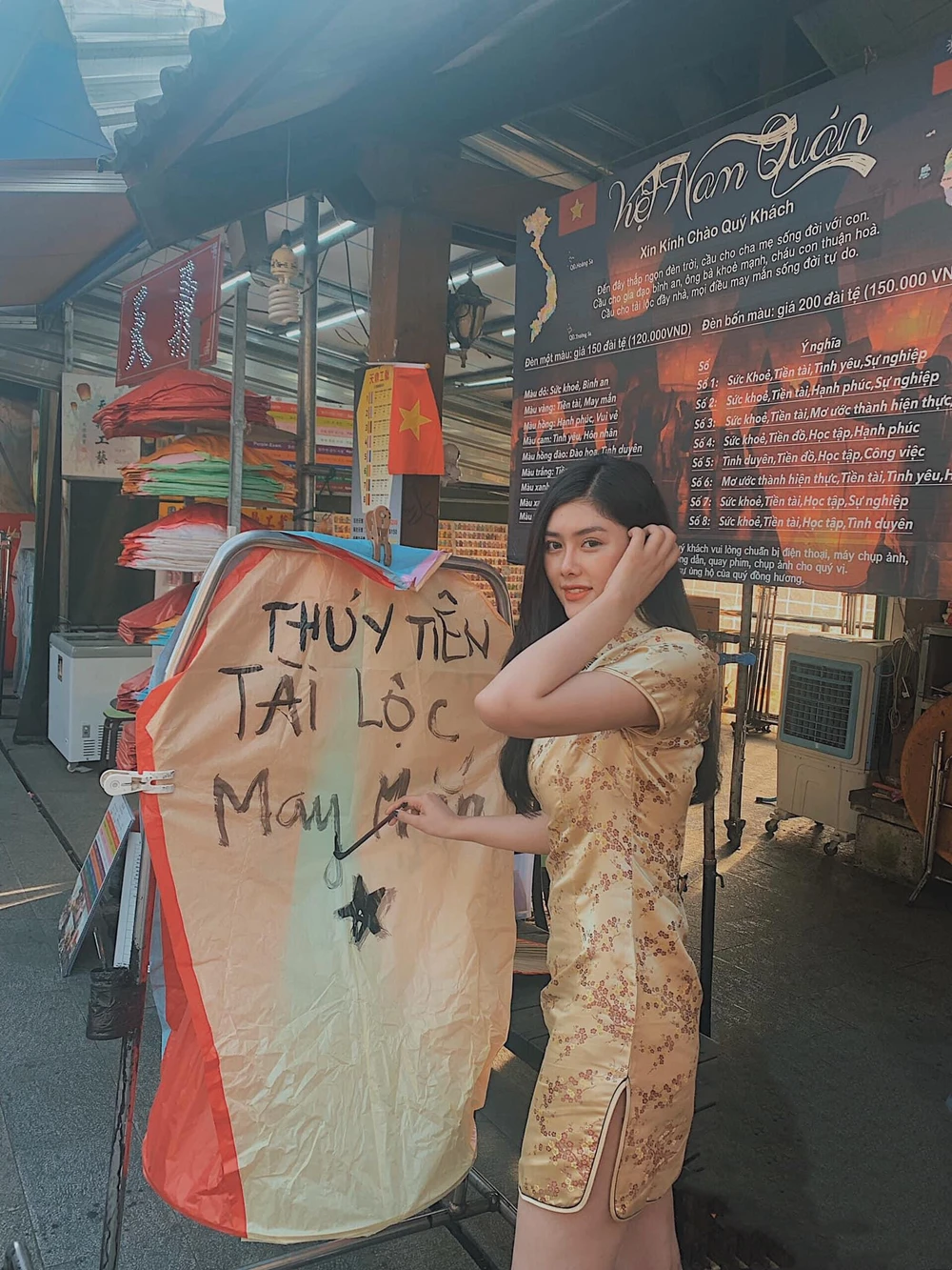 Và tất nhiên khi du lịch Đài Loan không thể không thử trang phục sườn xám phù hợp với vóc dáng của mình. Huỳnh Tiên nhận được “cơn mưa lời khen” cho những tấm ảnh mang đậm chất điện ảnh nhờ bộ sườn xám màu vàng khoe vóc dáng gợi cảm cũng như toát lên vẻ dịu dàng của cô nàng.