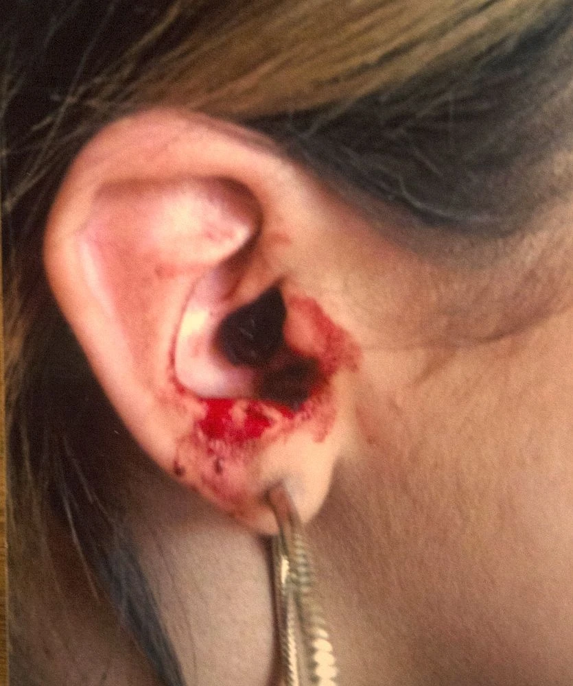 Huyết lệ còn rỉ ra bên tai. (Nguồn: The Sun)