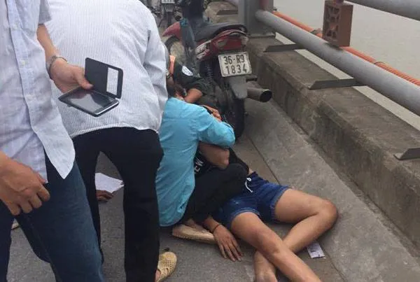 Cô gái trẻ ngất lịm khi nam thanh niên bất ngờ nhảy xuống sông. Ảnh: FB